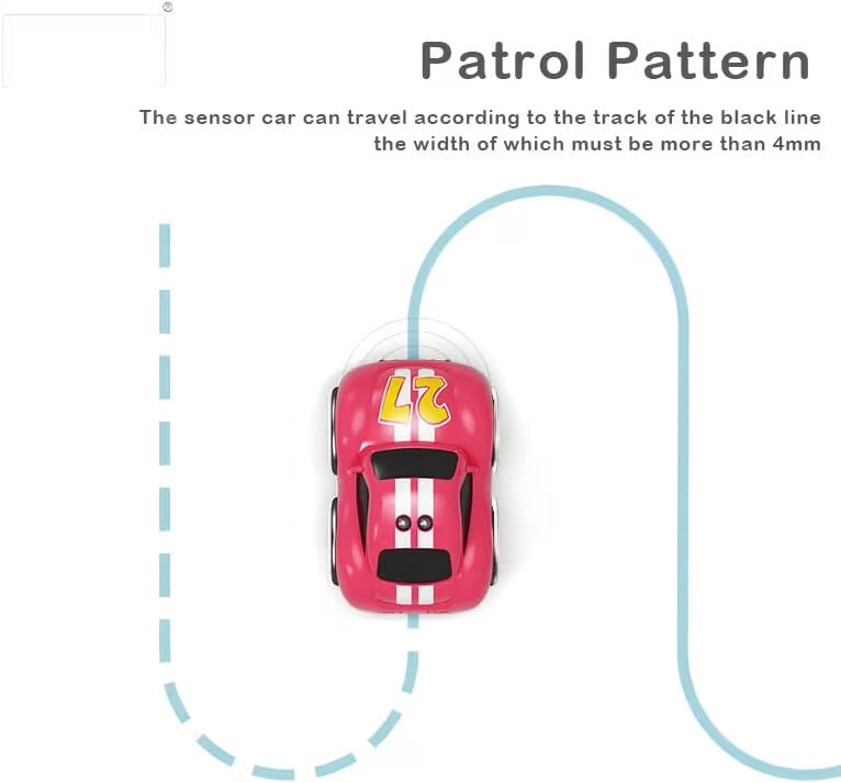 - 1️⃣ Intelligent Sensor & Line Following Technology: Equipped with advanced infrared line sensing and induction technology, this RC car automatically follows drawn tracks, helping kids explore smart motion and sensor-based learning through fun play.